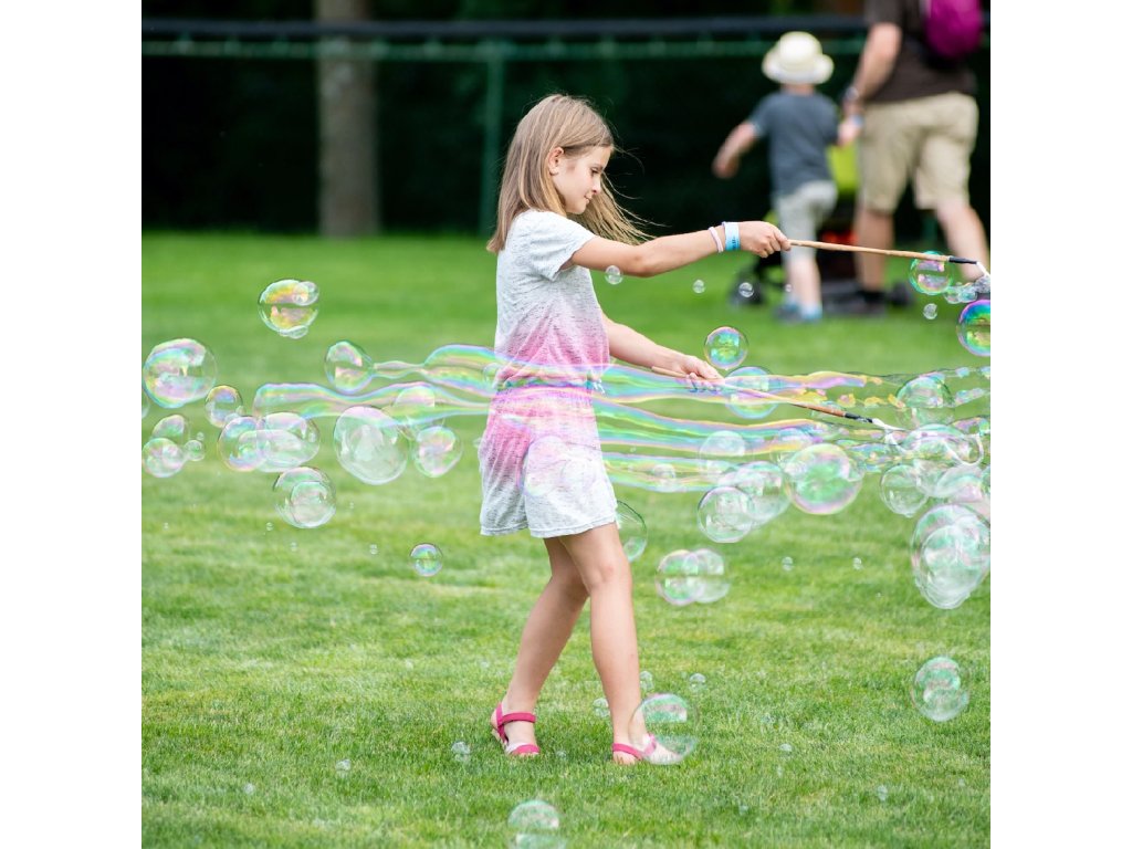Dieses Seifenblasengerät ist ein tschechisches Produkt und wir stehen hinter seiner Qualität. Wir haben Jahre gebraucht, um die richtige Zusammensetzung zu finden, um schöne große und feste Seifenblasen zu machen. Dank der natürlichen Zusammensetzung hinterlässt es keine Flecken auf Kleidung oder Möbeln, sodass Kinder und Erwachsene drinnen und draußen Spaß damit haben können. Seifenblasen machen auch Ihnen ein bisschen Spaß.