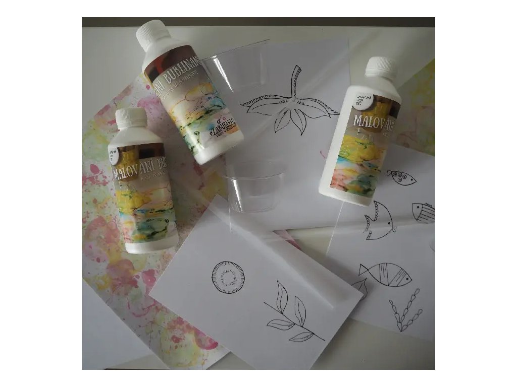 - 2x saubere Seifenblasenmalpapiere (Viertel- und Kreidepapier)