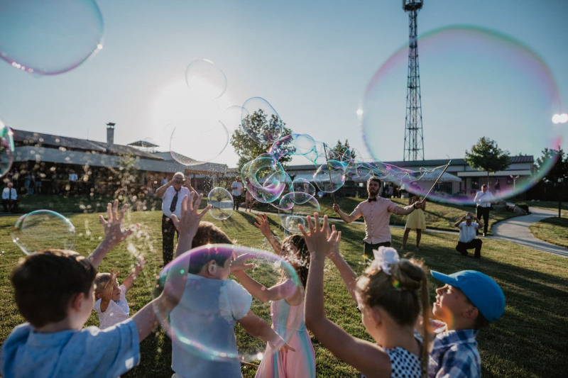 Allein durch ihre bloße Anwesenheit können Seifenblasen Kindern und Erwachsenen gleichermaßen Freude bereiten. Wenn Sie ein Programm aus unserem Angebot auswählen, sollten Sie sich in erster Linie überlegen, was Sie den Teilnehmern vermitteln wollen. Ist es eine magische Show? Ein Erlebnis und eine Bildung? Oder ein bisschen Bewegung und Spaß? Seifenblasen bieten ein sehr breites Spektrum an Erlebnissen.
